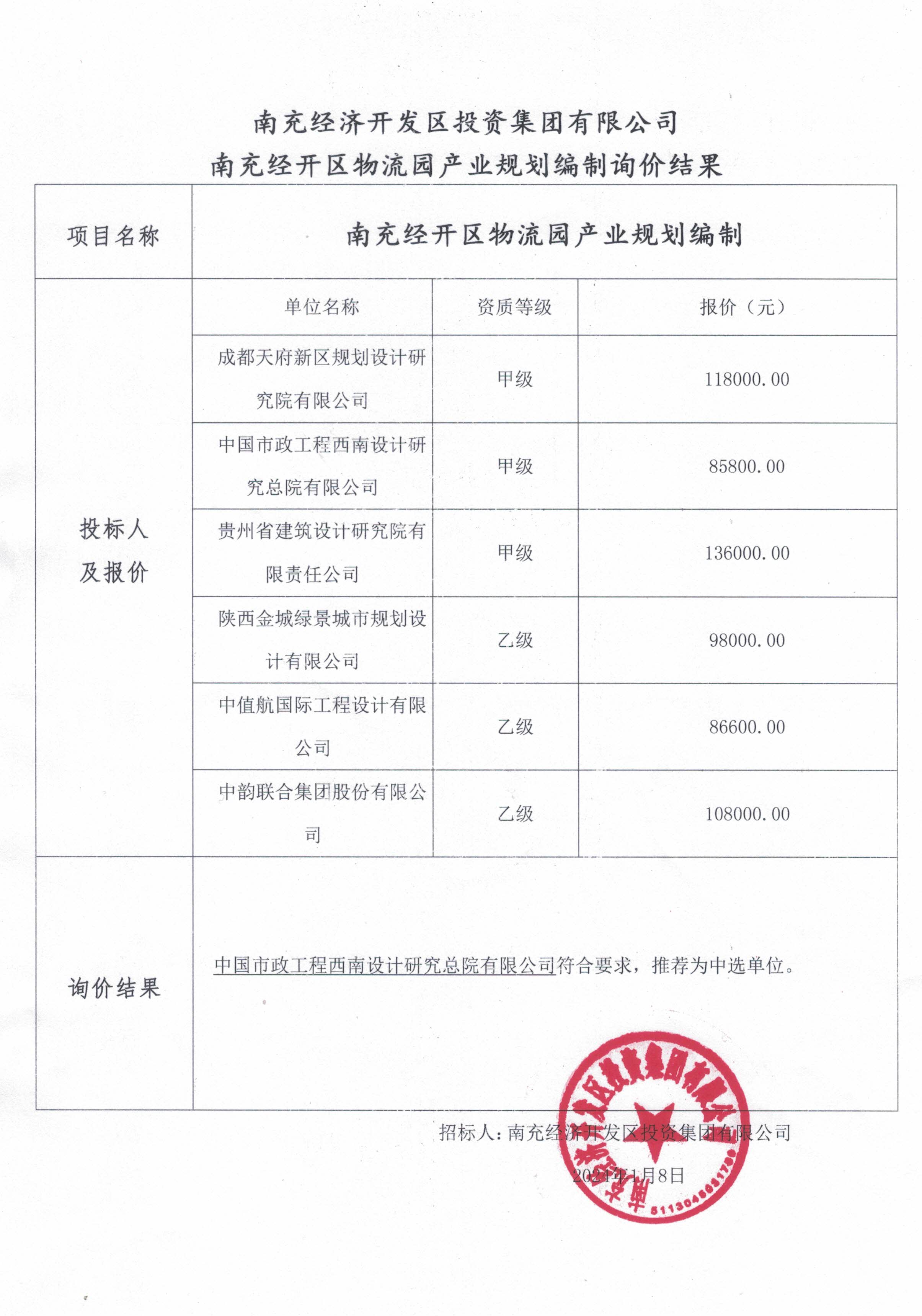 南充經(jīng)開區(qū)物流園產(chǎn)業(yè)規(guī)劃編制的詢價結(jié)果公示